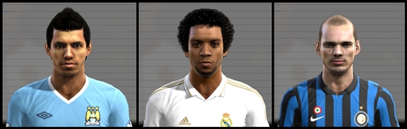 Descrição: Face de Agüero atacante que joga no time inglês do Manchester City, Face de Marcelona latera-esquerdo que joga no time espanhol do Real Madrid e Face de Sneijder meia que joga no time italiano do Inter de Milão para PES 2012.
